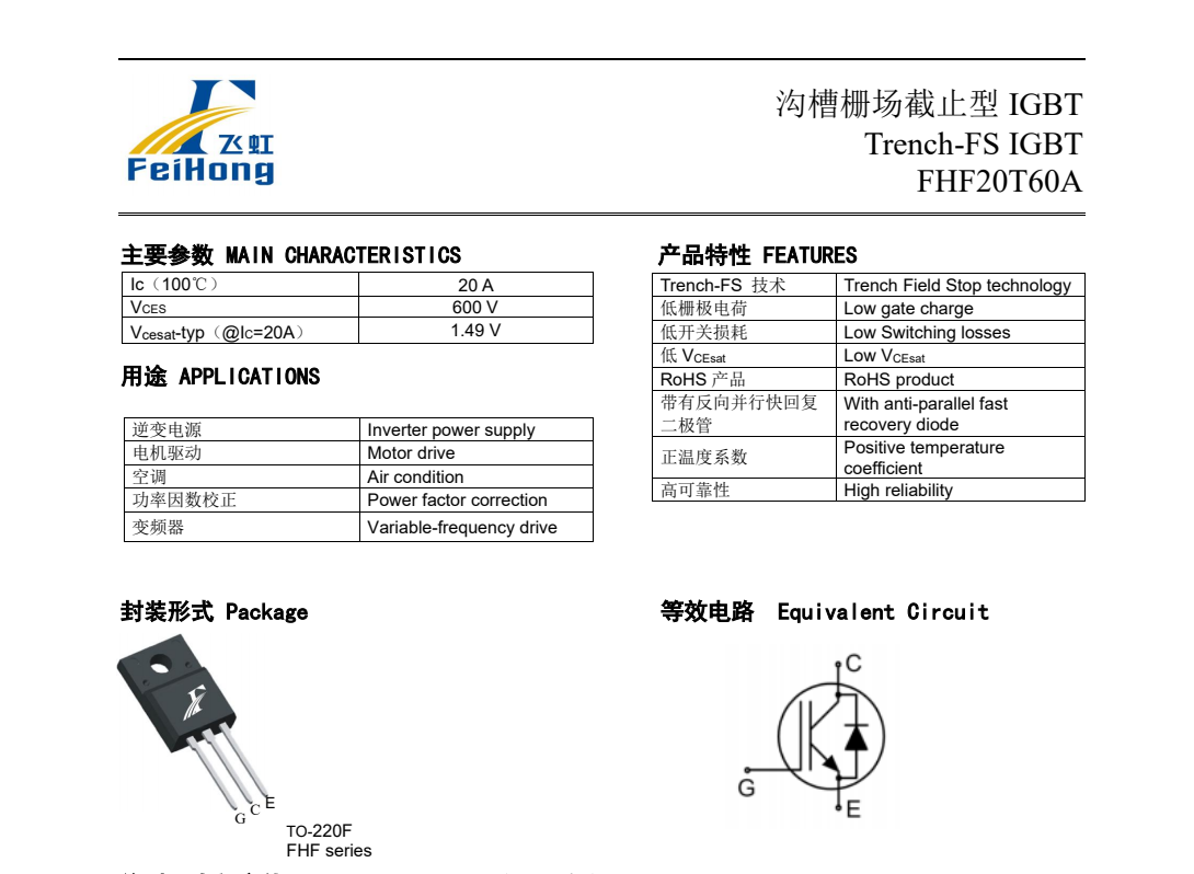 • 變頻器常用IGBT:FHF20T60A型號,電機驅動電路的優選IGBT單管。 2023-07-13